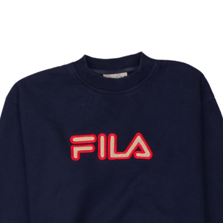 Fila 90's Spellout Crew Neck Heavyweight Sweatshirt Medium Navy Blue