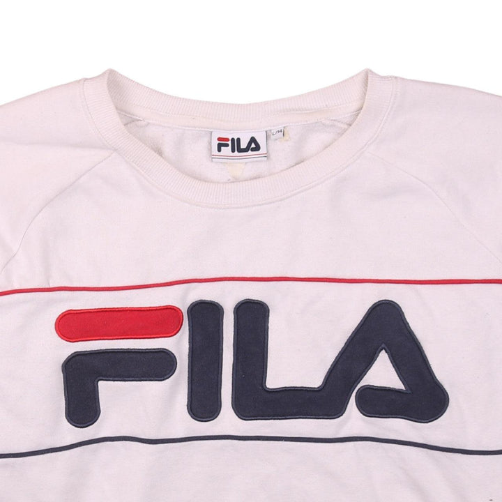 Fila 90s Vintage Spellout Crew Neck White Sweatshirt Large Women's