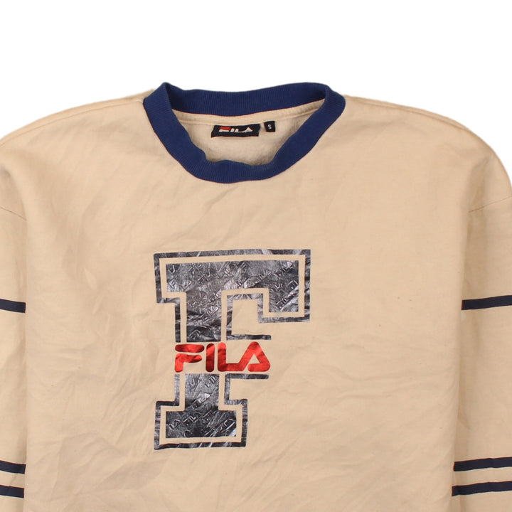 Vintage Fila 90's Beige Cream Spellout Crew Neck Sweatshirt Small