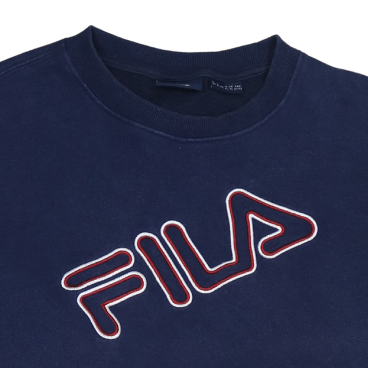 Fila 90's Spellout Crew Neck Sweatshirt XLarge Navy Blue