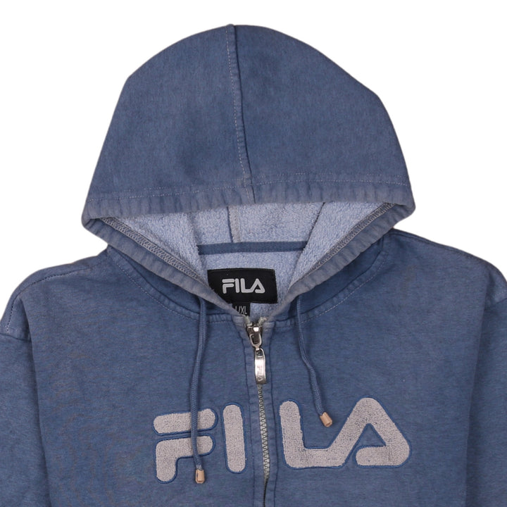 Fila 90's Vintage Blue Spellout Full Zip Up Hoodie XL