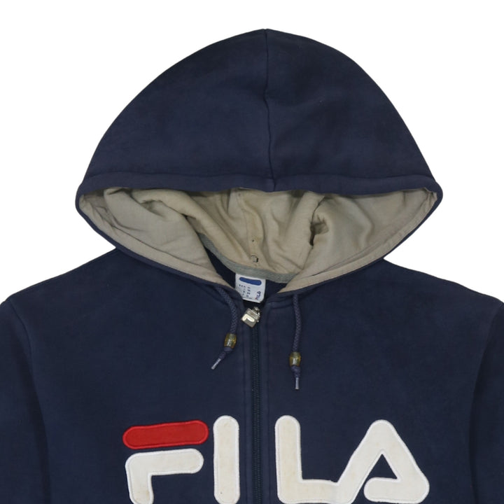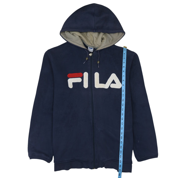 Fila 90's Spellout Full Zip Up Hoodie XLarge Navy Blue