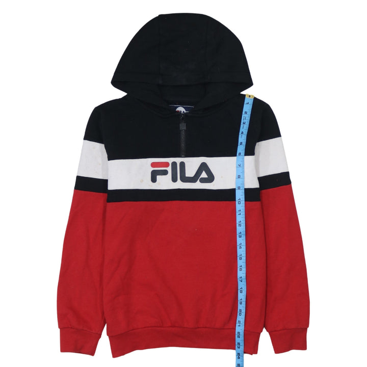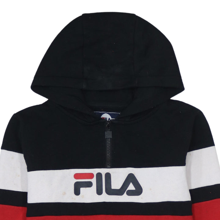 Fila 90's Spellout Black Quarter Zip Hoodie Women Medium Cotton