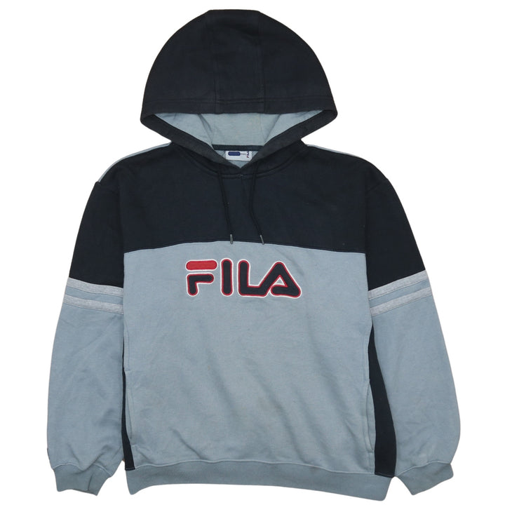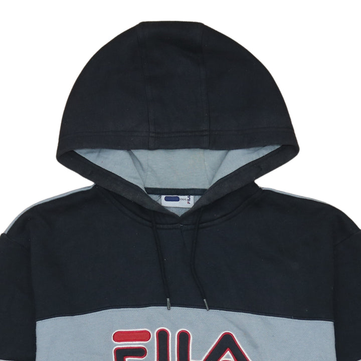 Fila 90's Black Spellout Pullover Hoodie XL | Vintage Streetwear