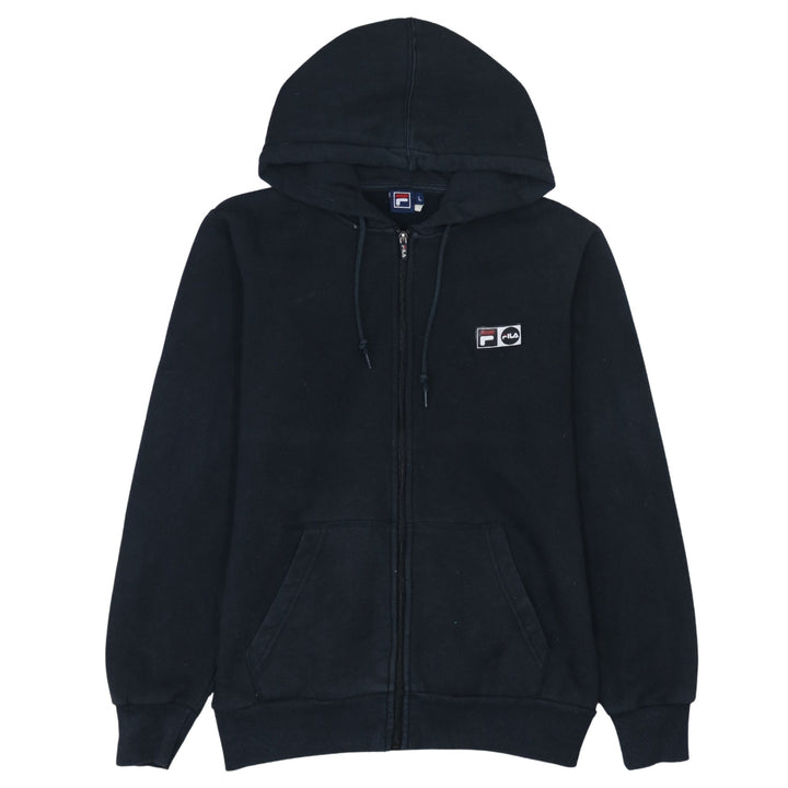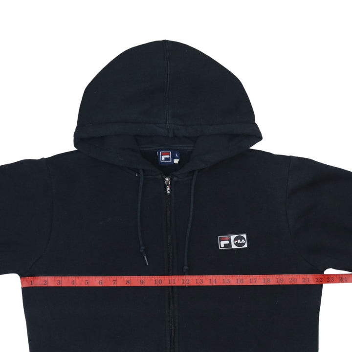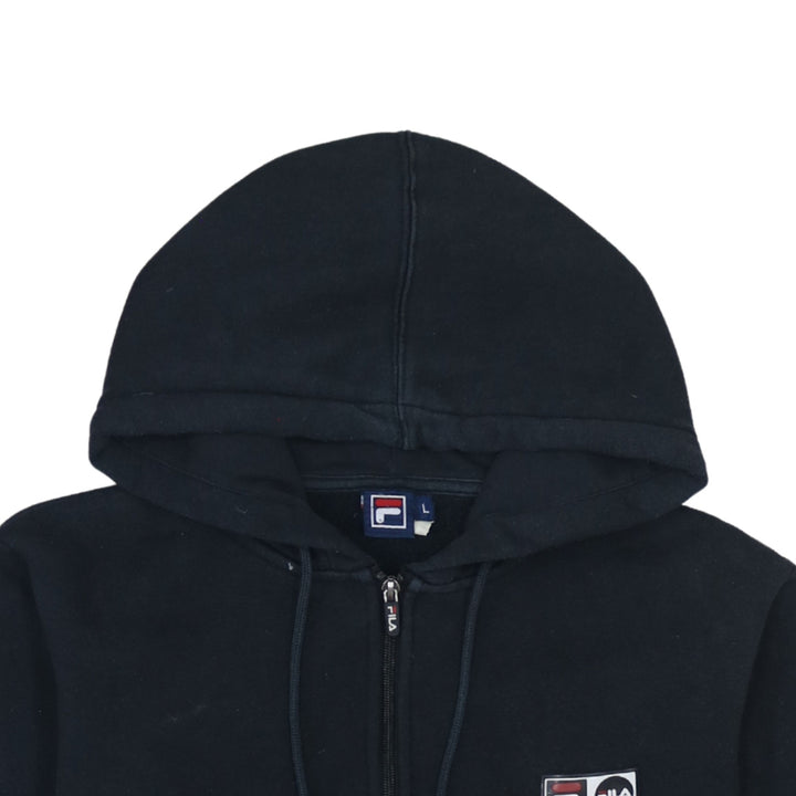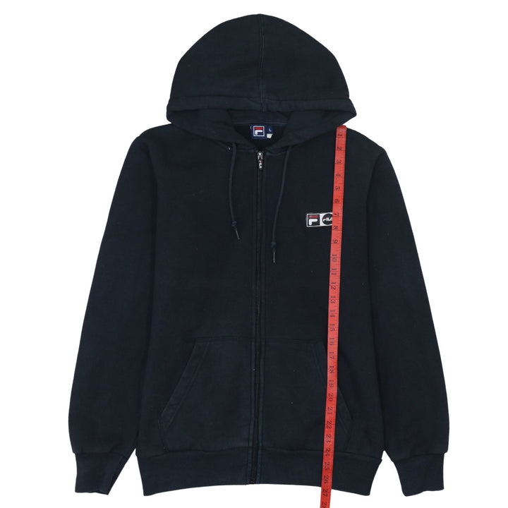 Fila Vintage 90's Black Full Zip Hoodie Large with Drawstring & Pockets