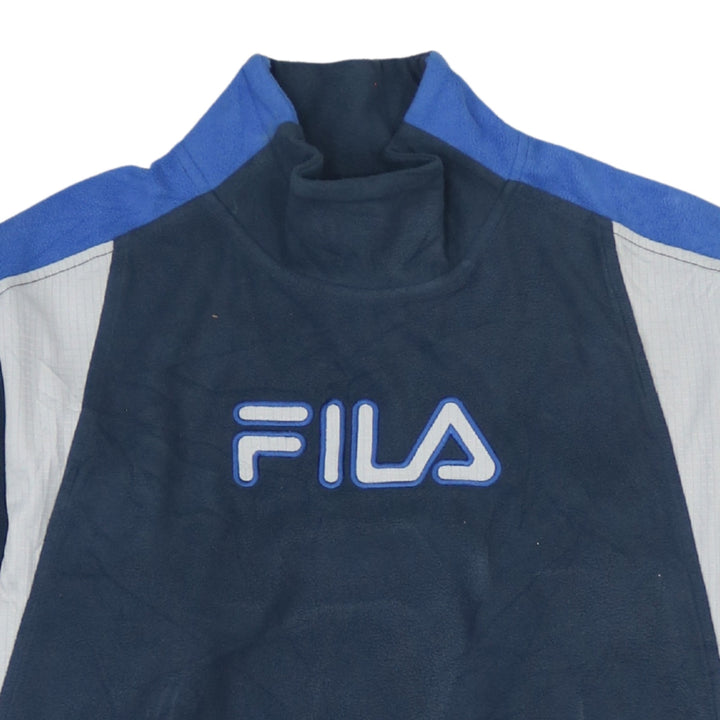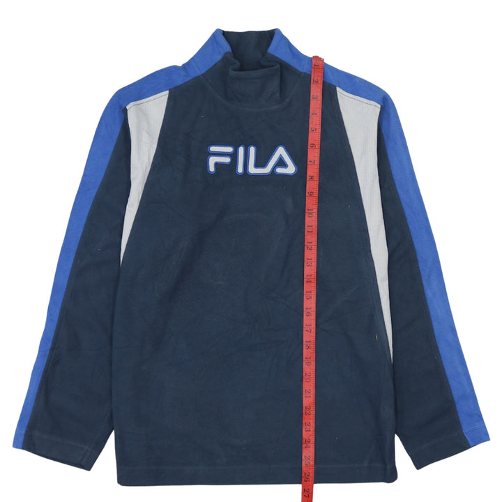 Fila 90's Vintage Navy Turtle Neck Spellout Fleece Jumper Large