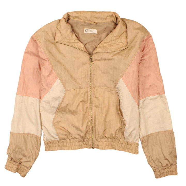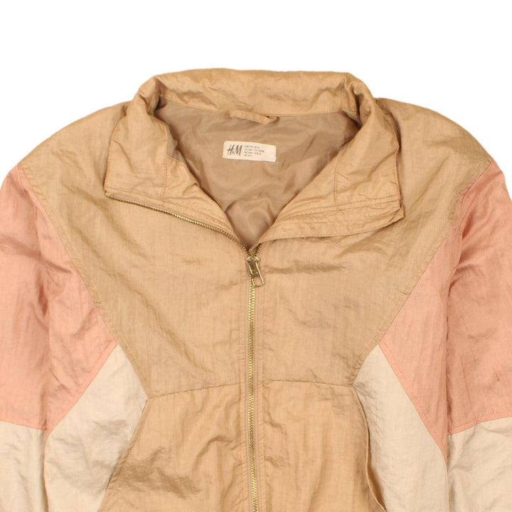 H&M 90's Vintage Tan Brown Windbreaker Jacket Women Large Zip Up