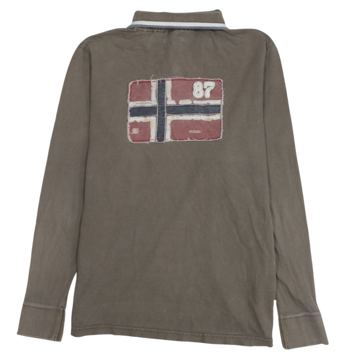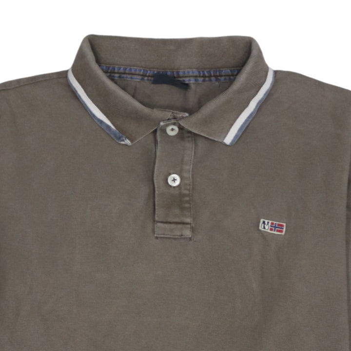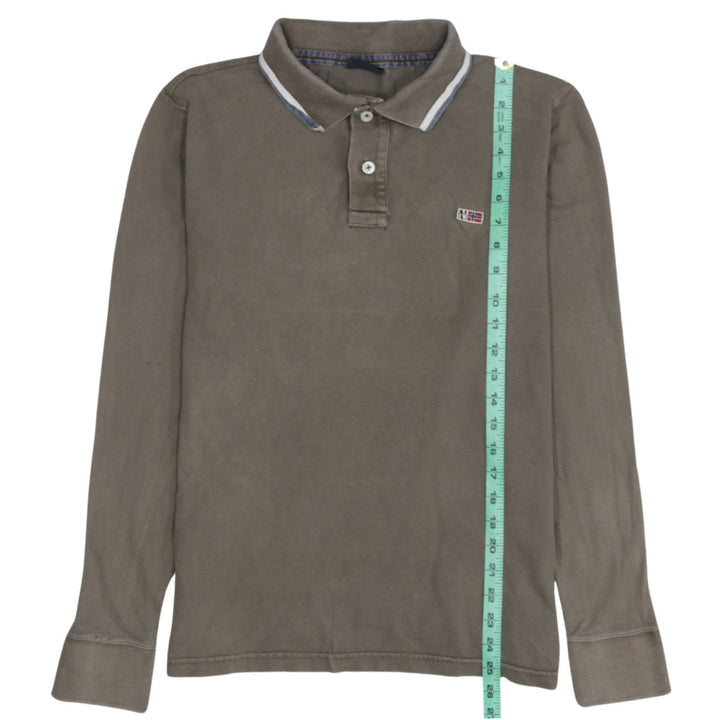 Napapijri 90's Long Sleeve Quarter Button Polo Shirt Large Brown