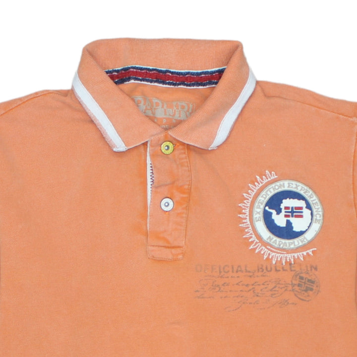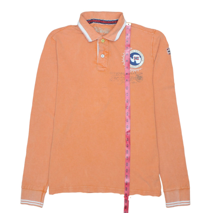 Napapijri 90's Long Sleeve Quarter Button Polo Shirt Medium Orange