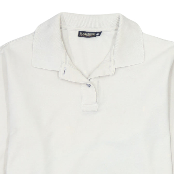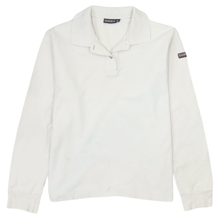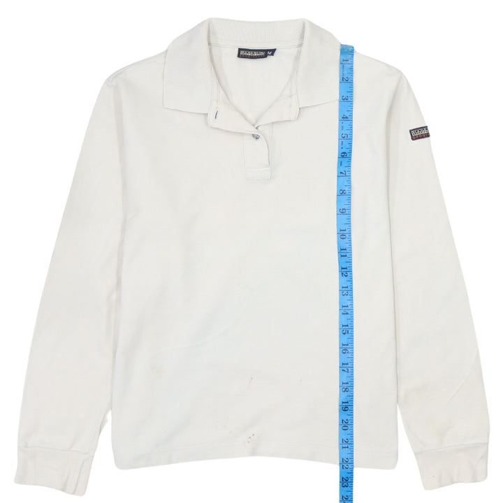 Napapijri Vintage 90s White Cotton Long Sleeve Polo Shirt Men Medium