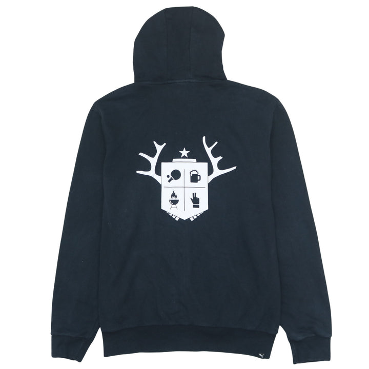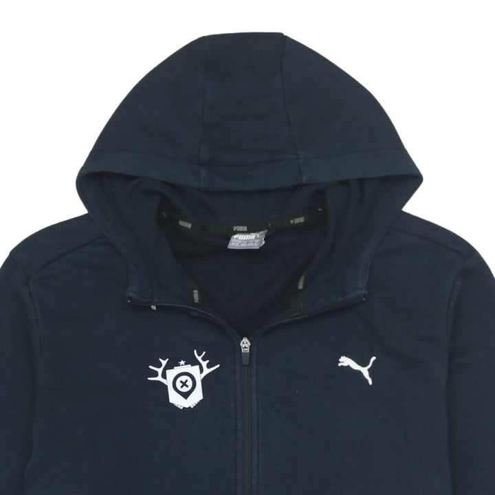 Puma 90's Vintage Black Full Zip Hoodie with Drawstring Pockets XL