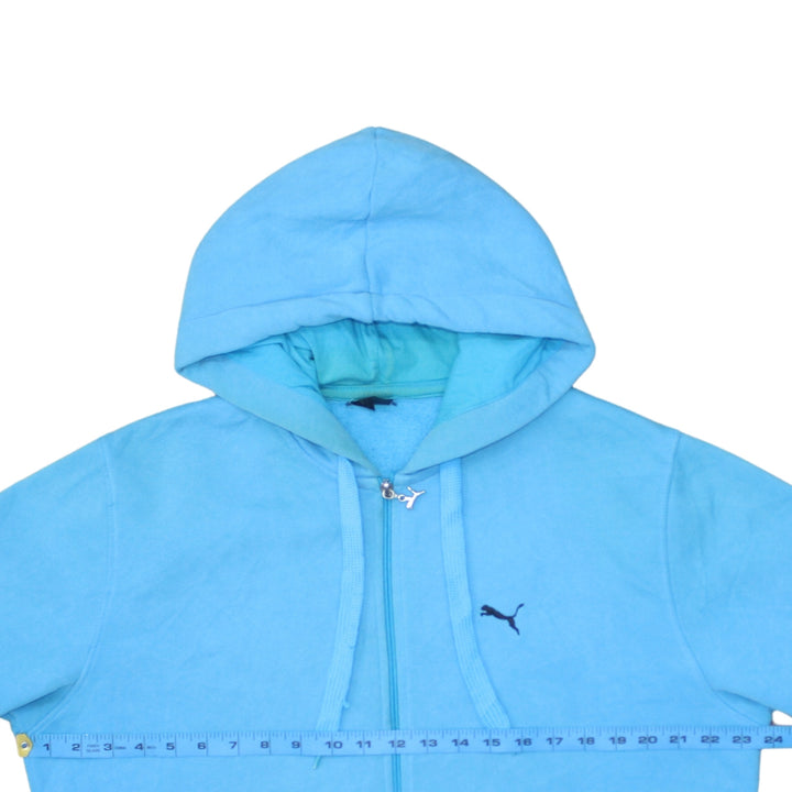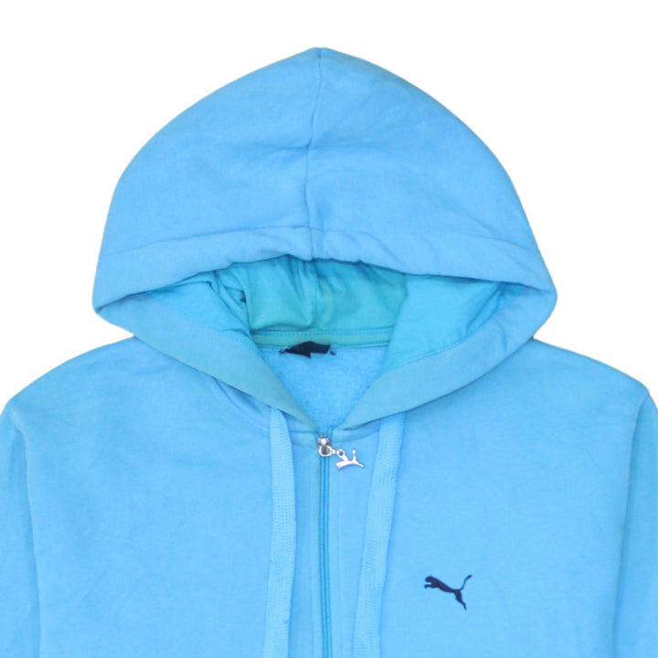 Puma 90's Drawstring Pockets Full Zip Up Hoodie XLarge Blue