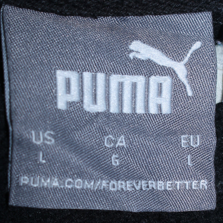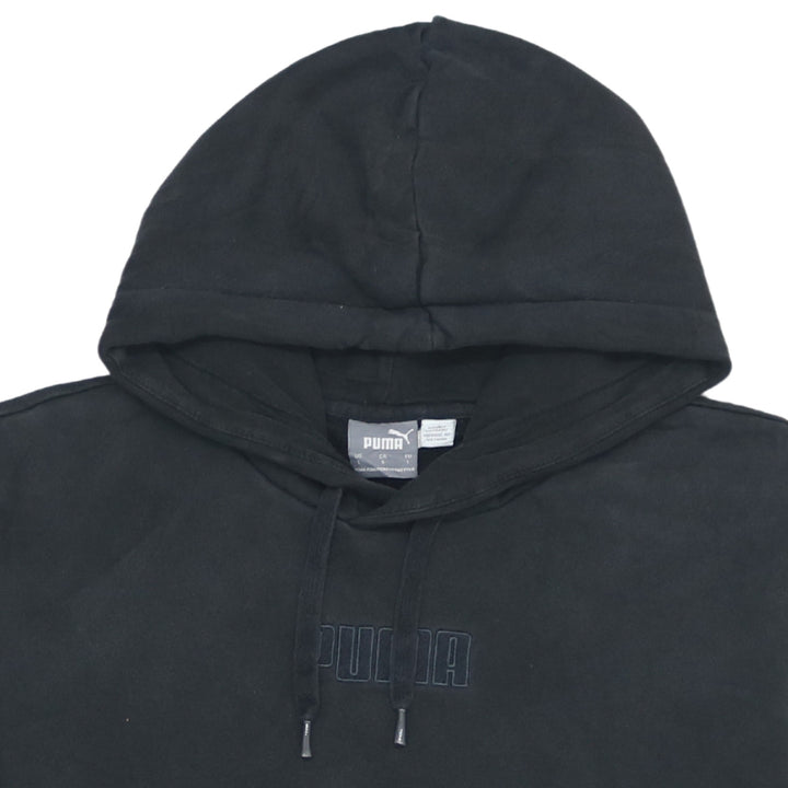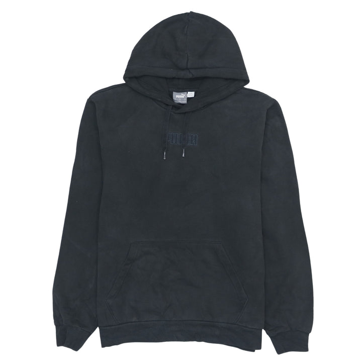 Puma 90's Vintage Black Pullover Hoodie with Drawstring Pockets - Men's Large
