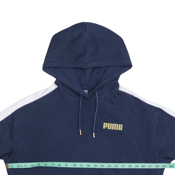 Puma 90's Drawstring Pockets Pullover Hoodie Medium Navy Blue