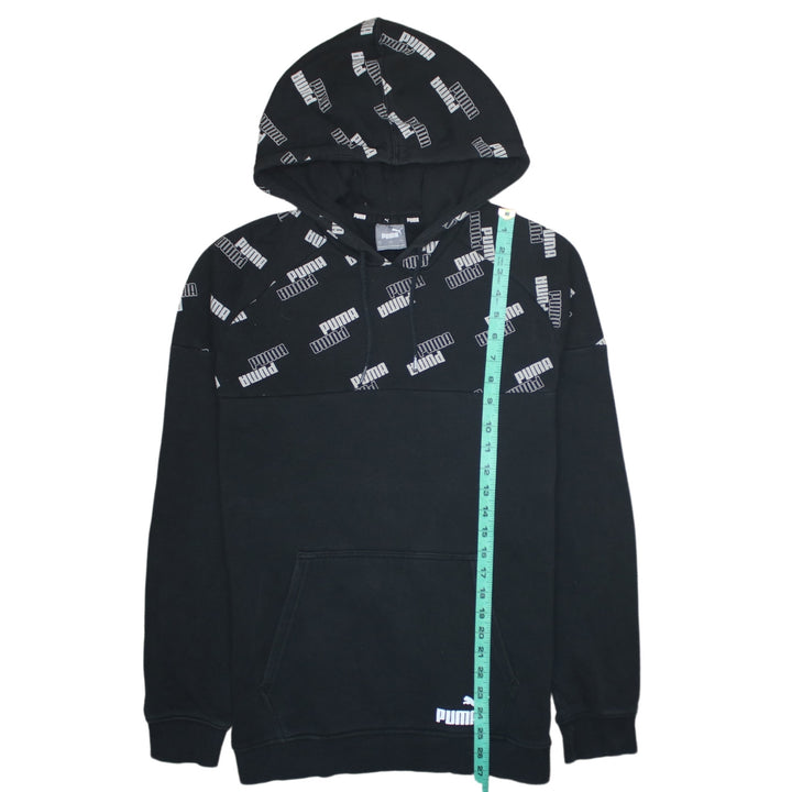 Puma 90's Drawstring Pockets Pullover Hoodie Small Black