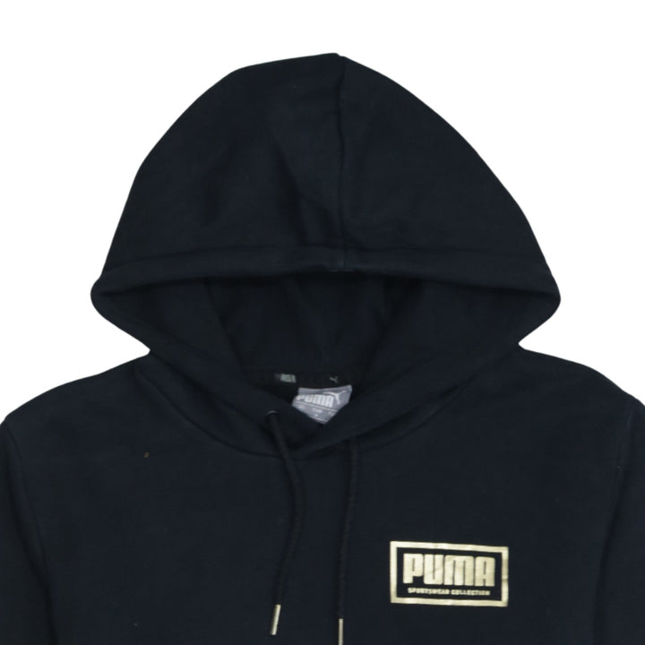 Puma 90's Drawstring Pockets Pullover Hoodie Small Black