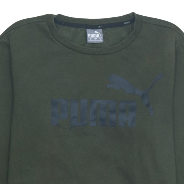 Puma 90's Khaki Green Spellout Crew Neck Sweatshirt Mens Small