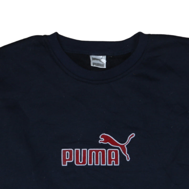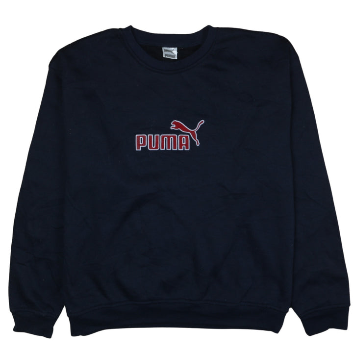 Puma 90's Vintage Navy Blue Spellout Crew Neck Sweatshirt XLarge