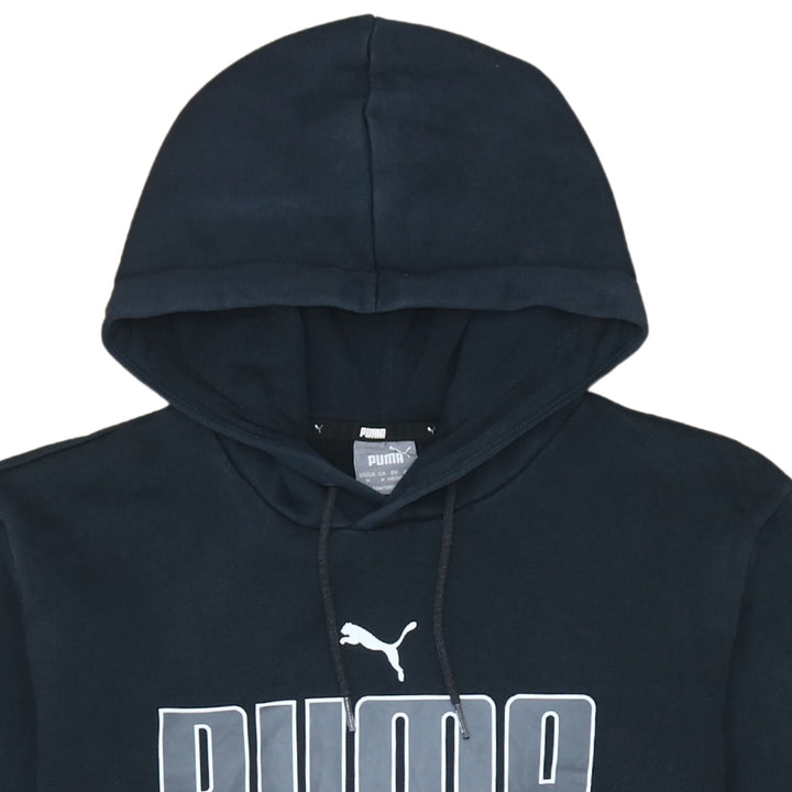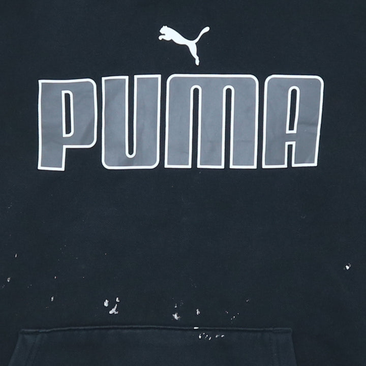Puma Men's 90s Black Spellout Pullover Hoodie Medium - Vintage Style