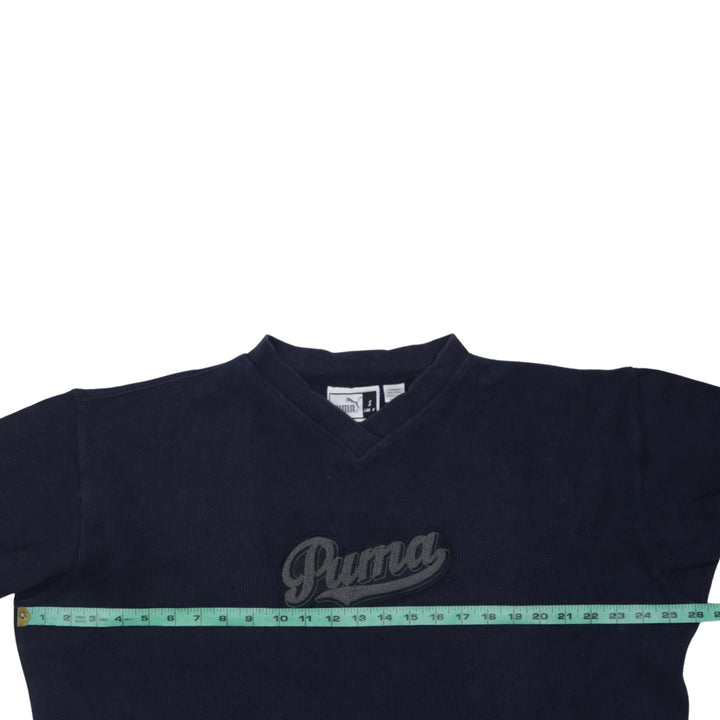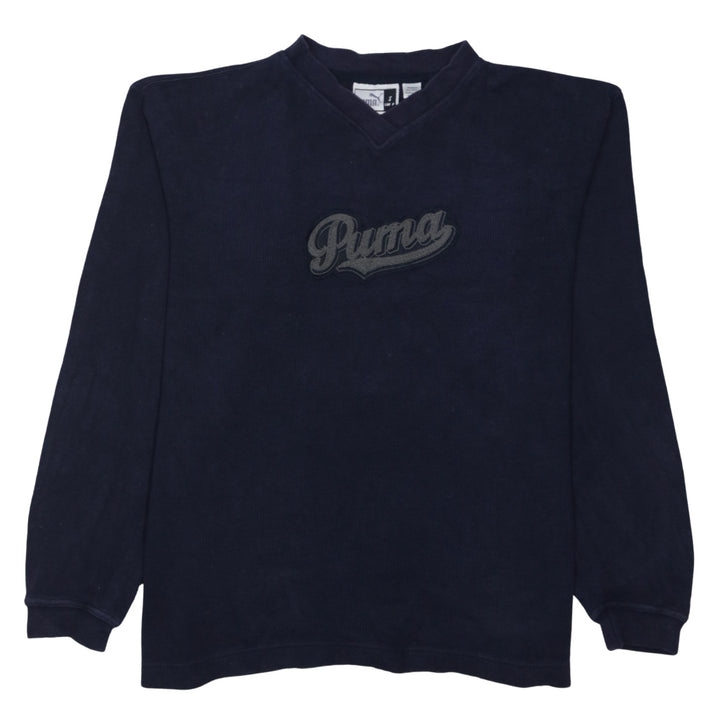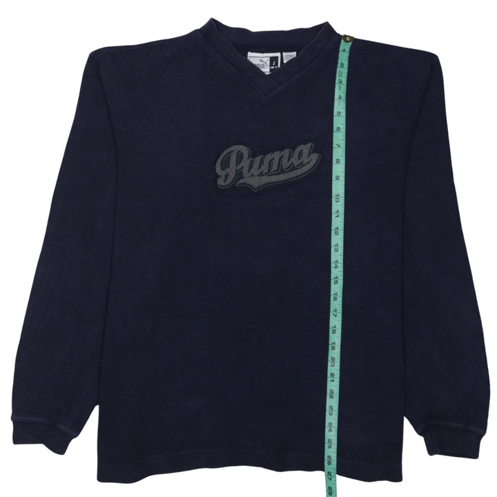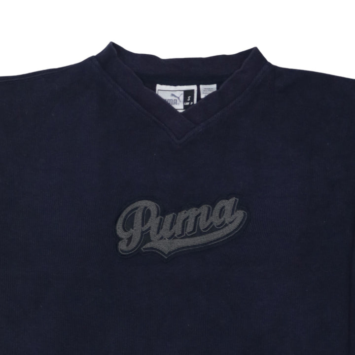 Puma 90's Spellout V Neck Sweatshirt Small Navy Blue