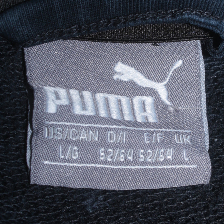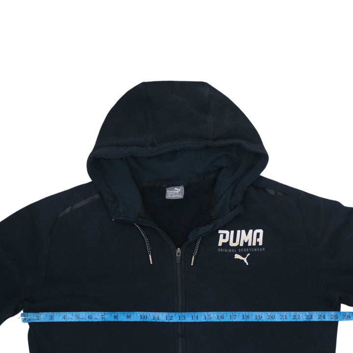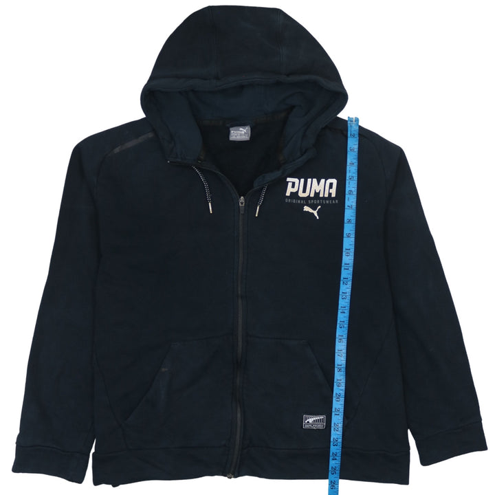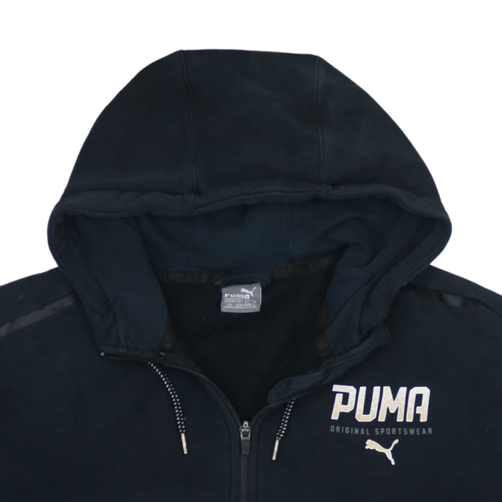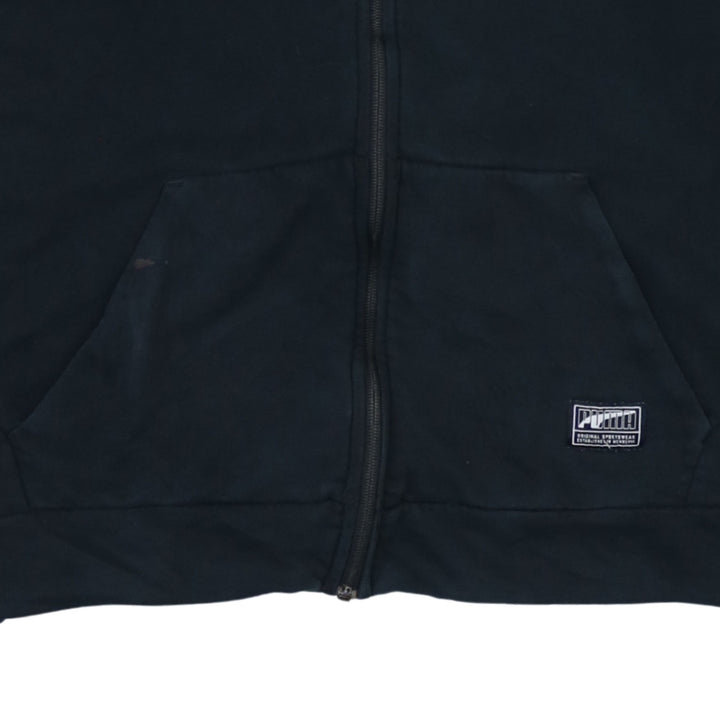 Puma 90's Vintage Full Zip Black Hoodie Large with Drawstring Pockets