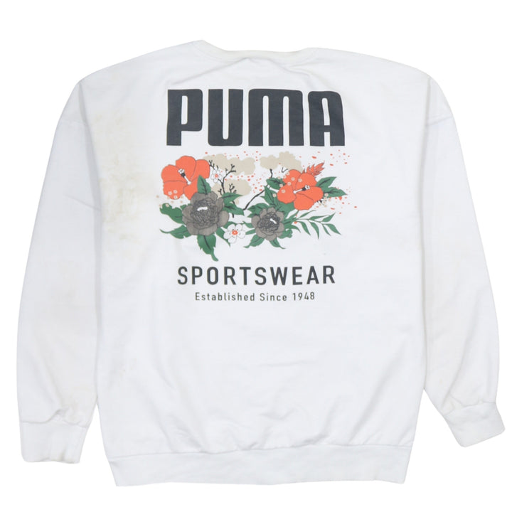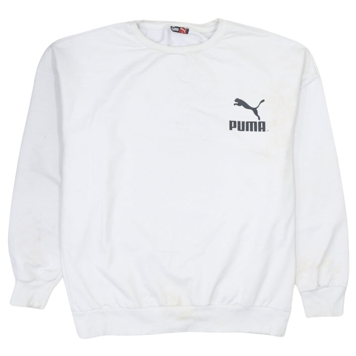 Puma Men's 90s Vintage White Crew Neck Sweatshirt Large Cotton
