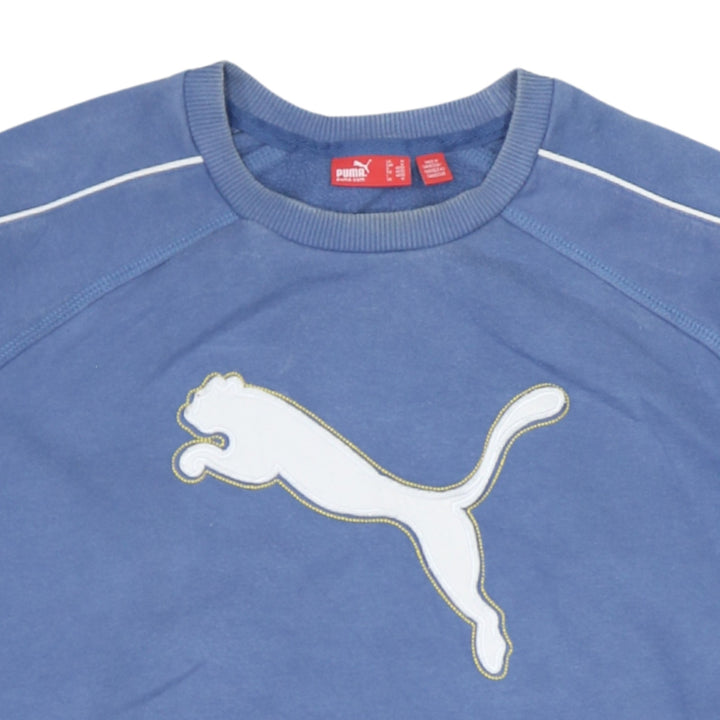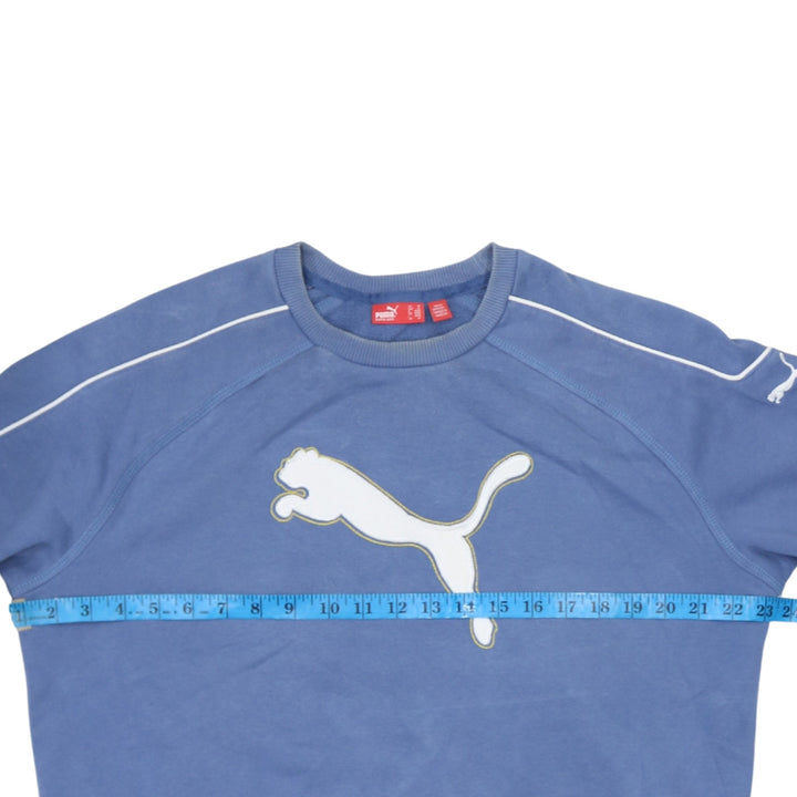 Puma 90s Vintage Spellout Crew Neck Sweatshirt Medium Blue
