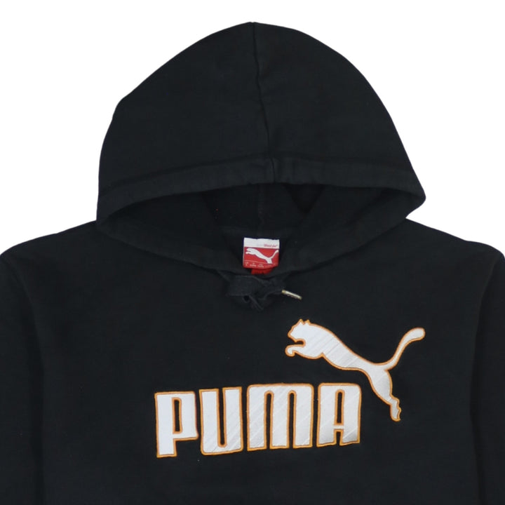 Puma 90's Vintage Spellout Pullover Hoodie Large Black Cotton