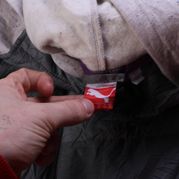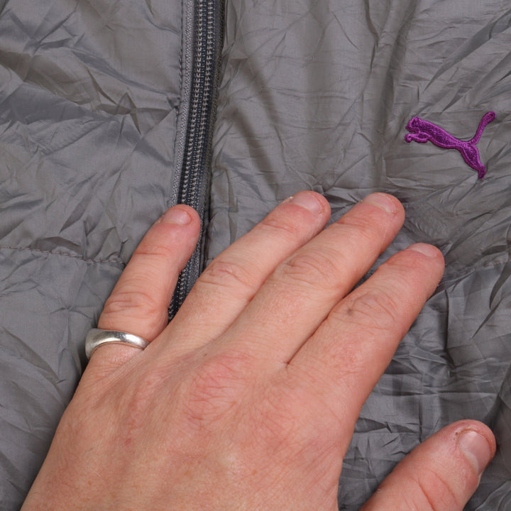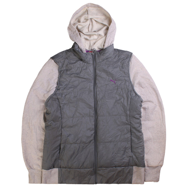 Puma Women's X-Large Grey Hooded Puffer Gilet Jacket Vintage Quality