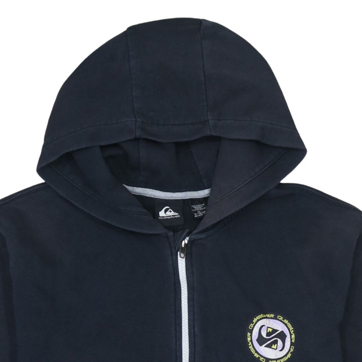 QuikSilver 90's Drawstring Pockets Full Zip Up Hoodie XLarge Black