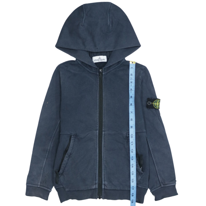 90s Stone Island Navy Blue Zip Hoodie XS, Retro Drawstring Style