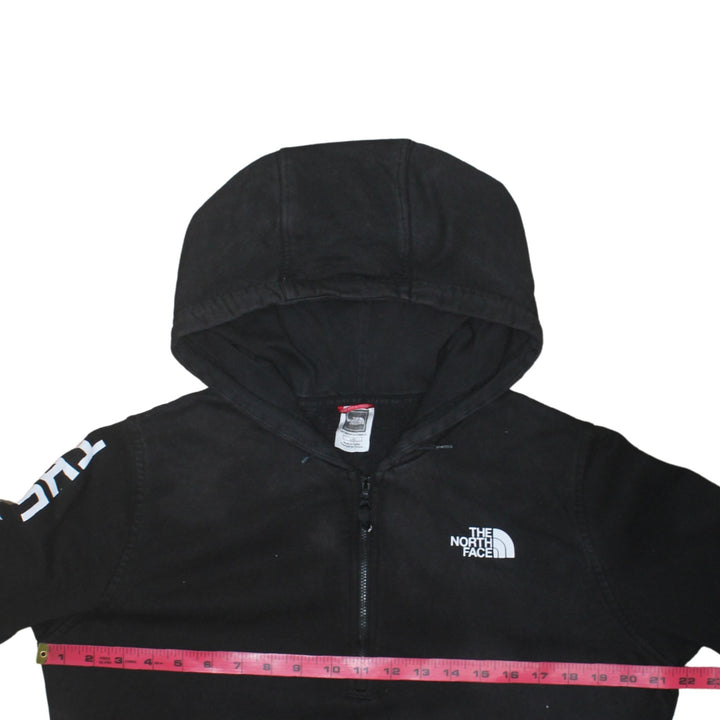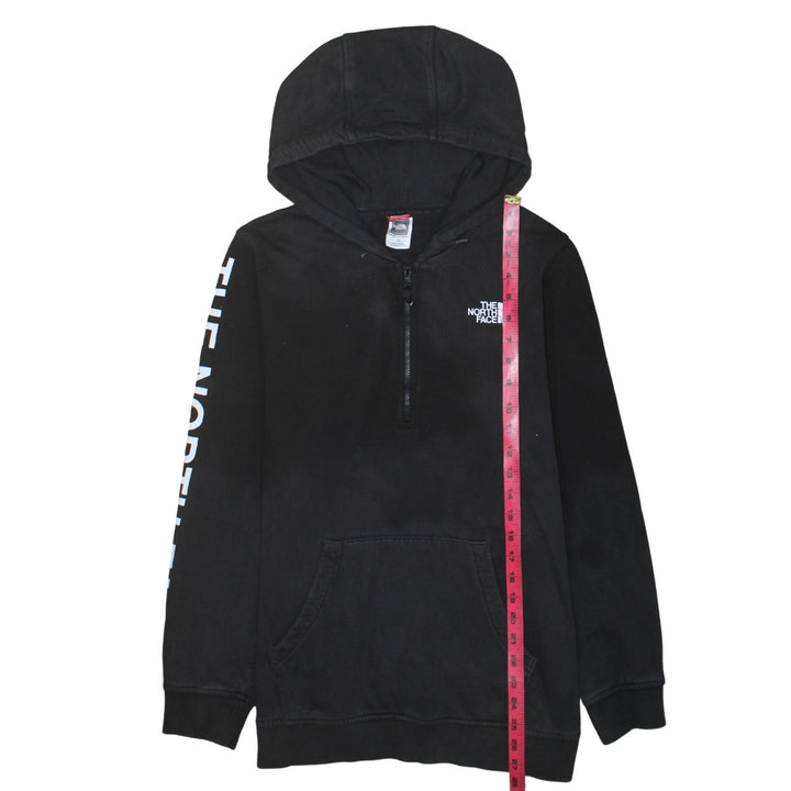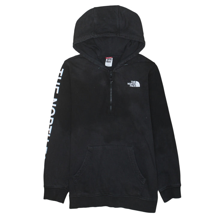 The North Face Black Hoodie Women’s Large Printed Sleeve Logo Quarter Zip Pullover Sweatshirt