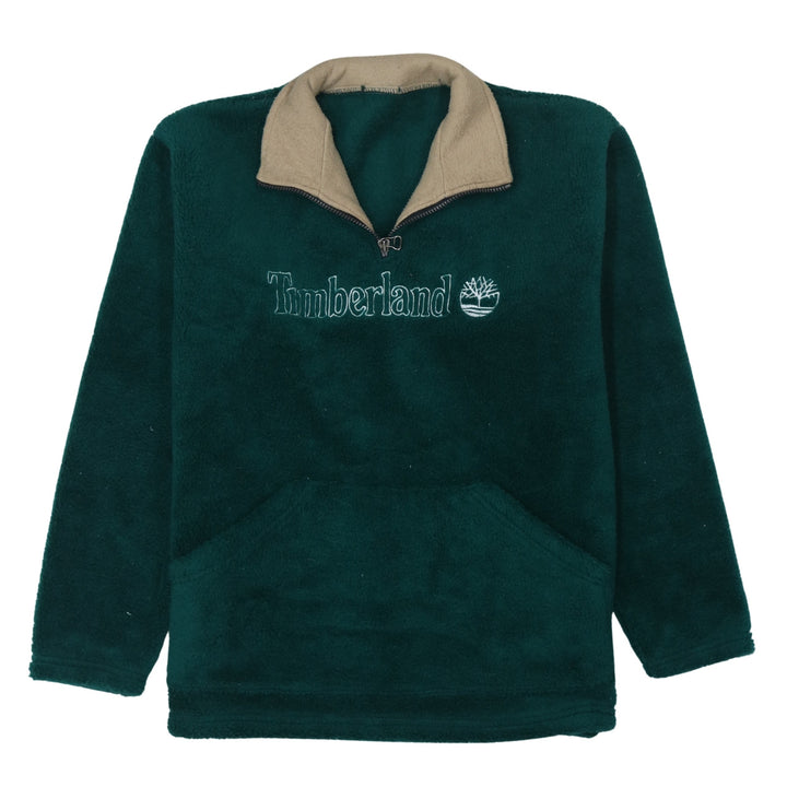 Timberland 90's Spellout Quarter Zip Fleece Jumper Medium Green