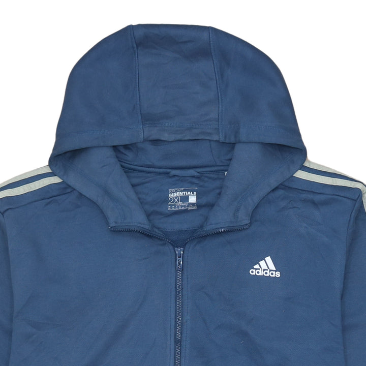 Adidas 90's Blue Striped Sleeve Full Zip Hoodie XXLarge (2XL)