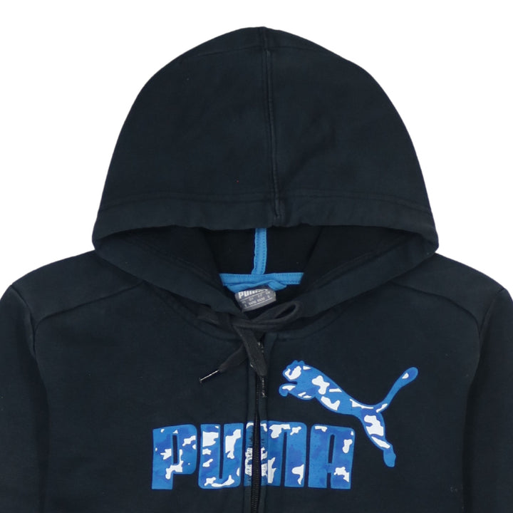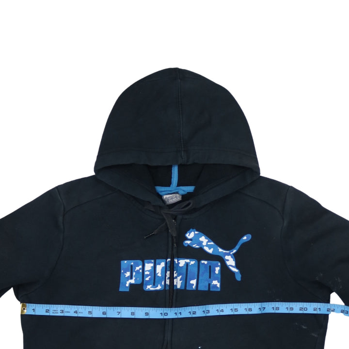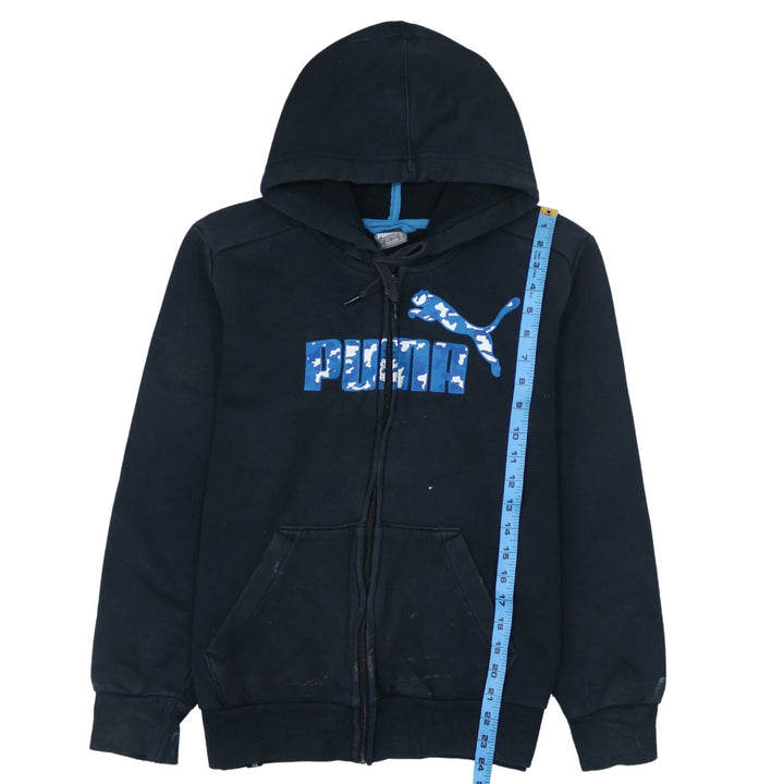 Puma 90's Black Spellout Full Zip Hoodie Small Cotton Vintage
