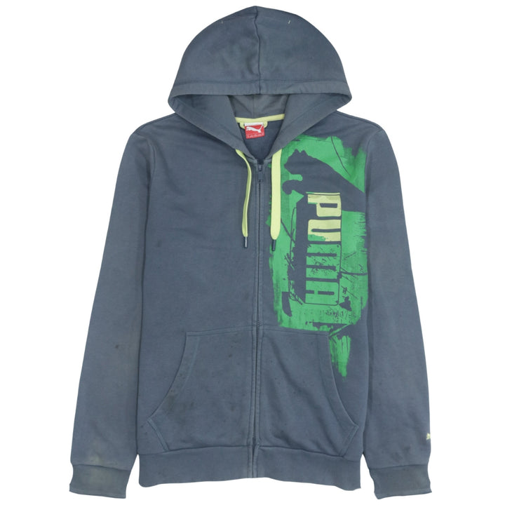 Vintage 90s Puma Spellout Zip-Up Men's Grey Hoodie Medium