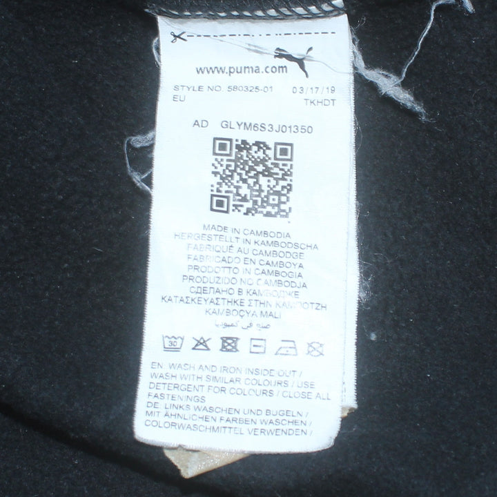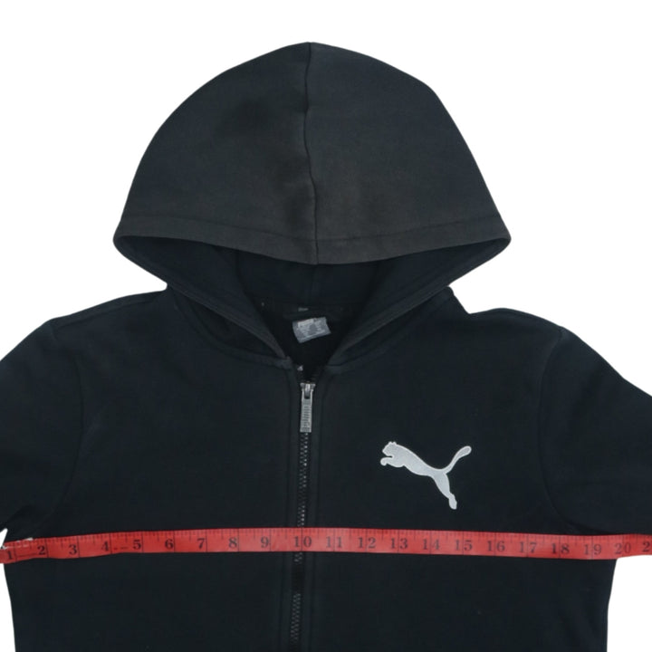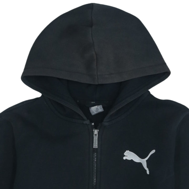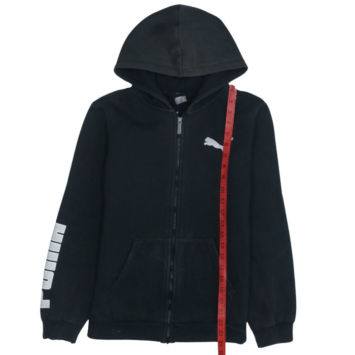 Vintage 90s Puma XLarge Black Full Zip Hoodie with Drawstring Pockets