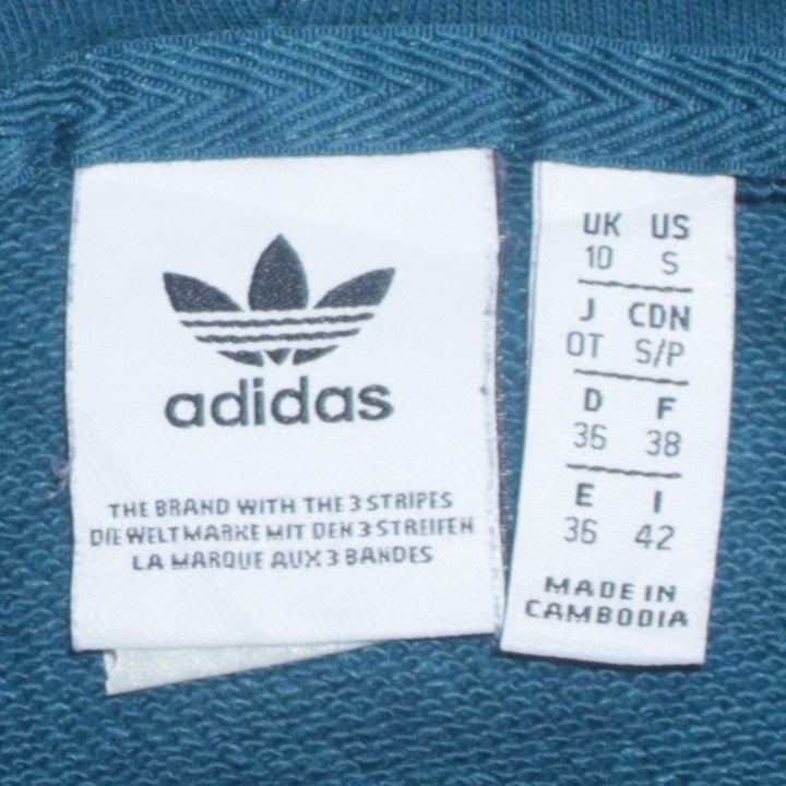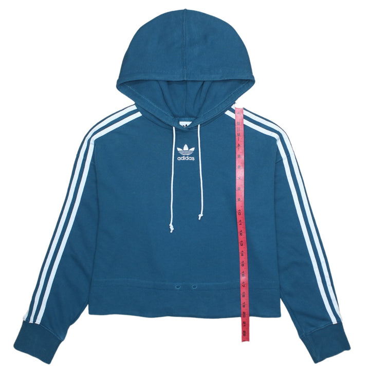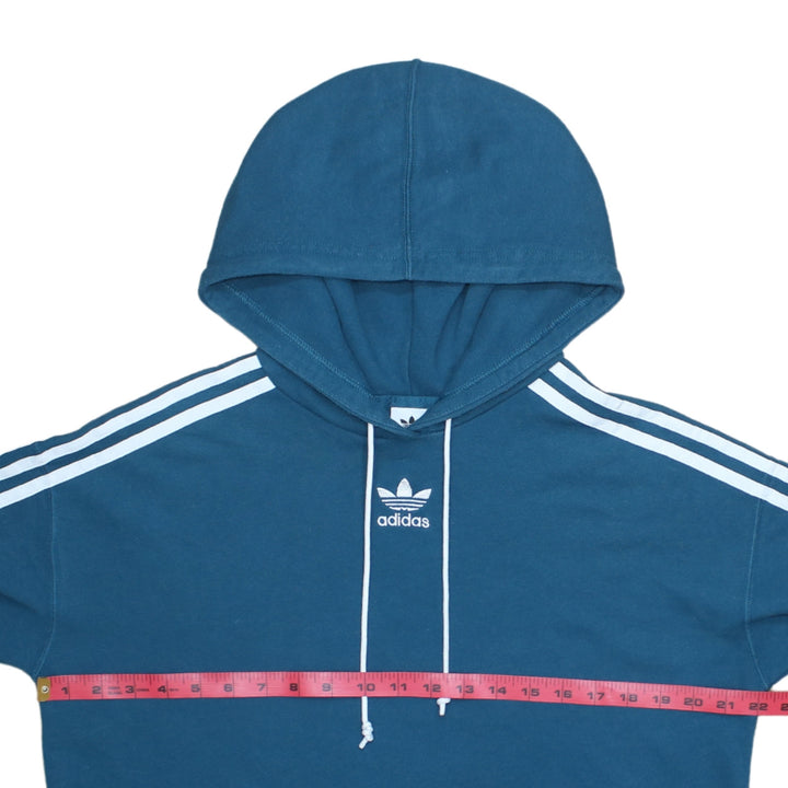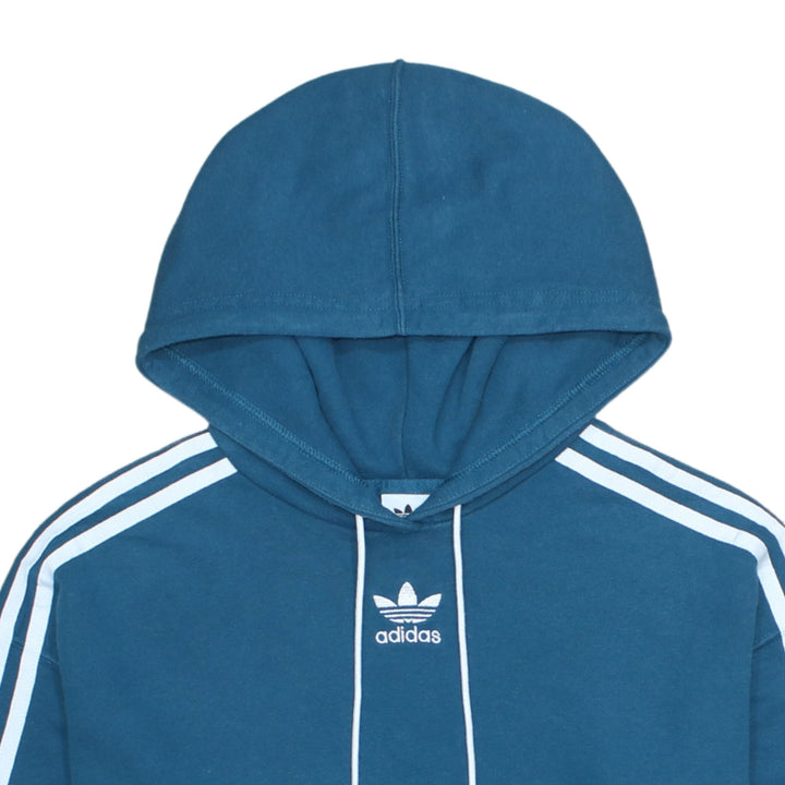 Adidas Vintage 90's Pullover Hoodie Striped Sleeve Turquoise Small