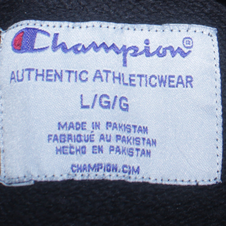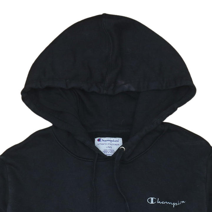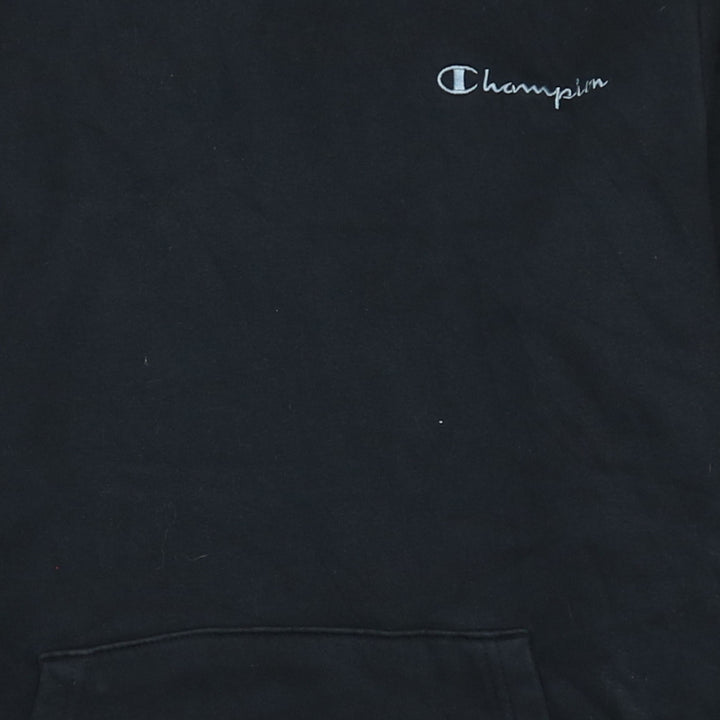 Vintage Champion 90's Black Pullover Hoodie Large with Drawstring & Pockets
