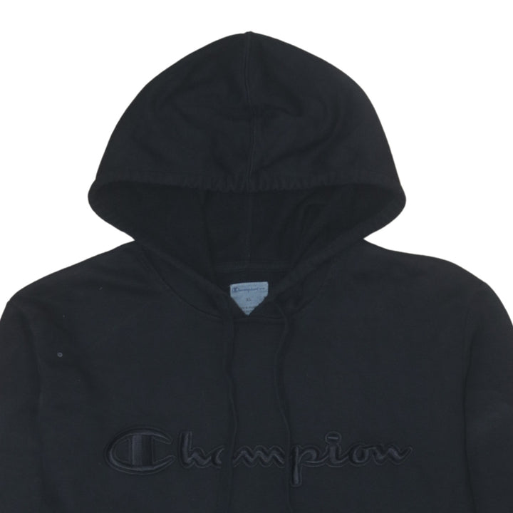 Vintage Champion 90s Black Spellout Pullover Hoodie XL Cotton Men