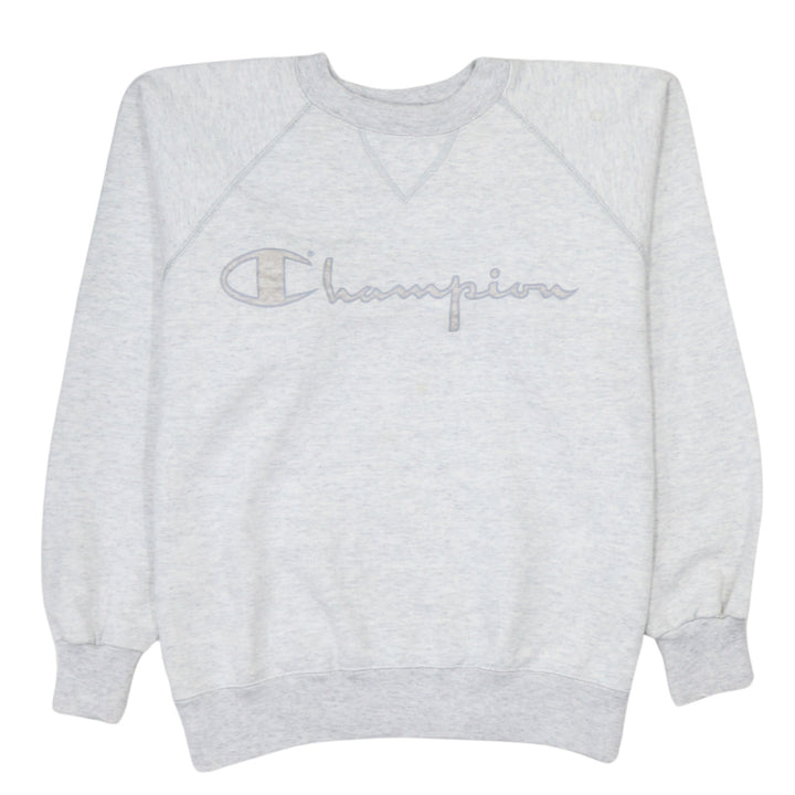 Vintage Champion 90's Grey Spellout Crew Neck Sweatshirt Size Small