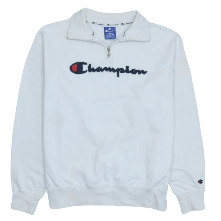 Vintage 90's Champion Spellout Cotton Quarter Zip Sweatshirt Small
