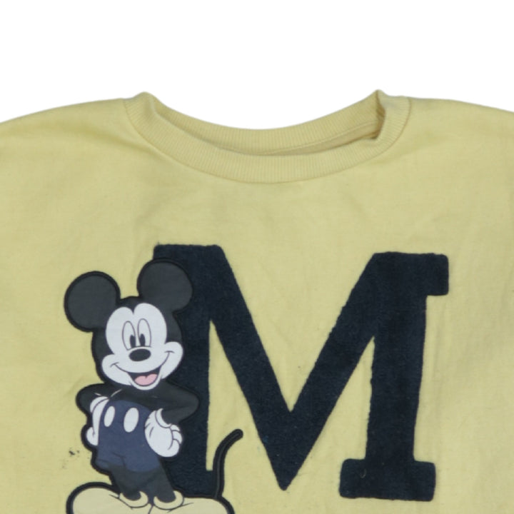 Vintage Disney 90's Mickey Mouse Sweatshirt Crew Neck Yellow Medium