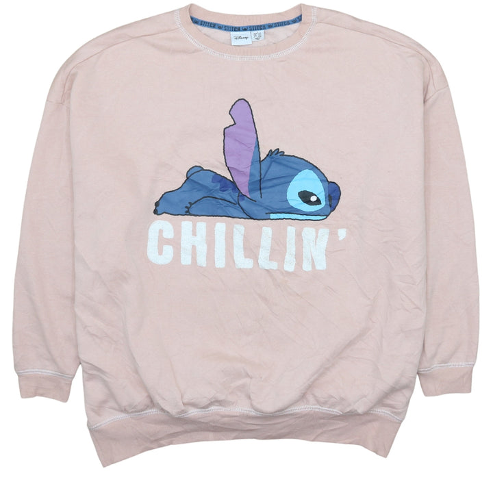 Disney Stitch 90s Vintage Pink Crew Neck Sweatshirt Women's Large