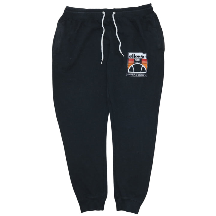 Vintage Ellesse 90s Black Large Joggers Sweatpants with Elastic Waist