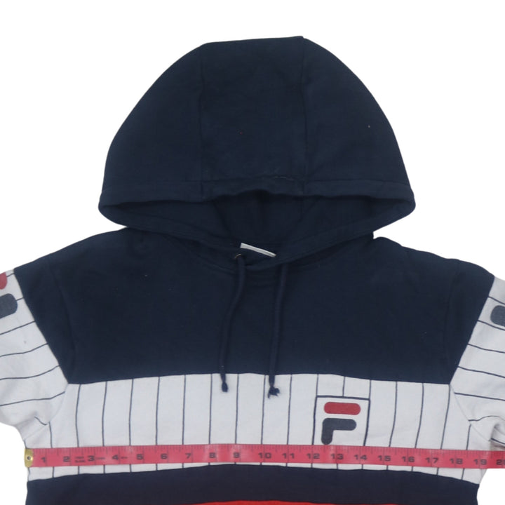 Fila 90's Small Men’s Navy Blue Pullover Hoodie with Drawstring Pockets